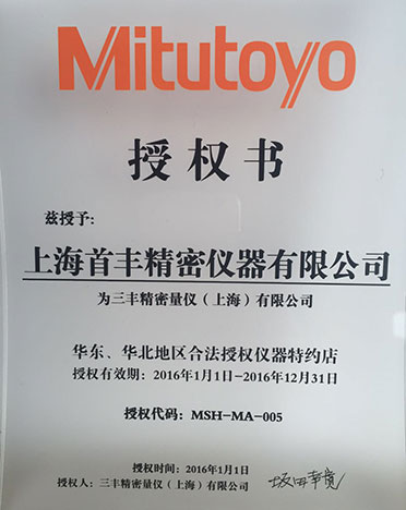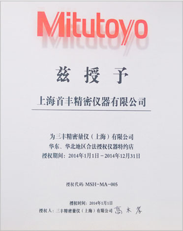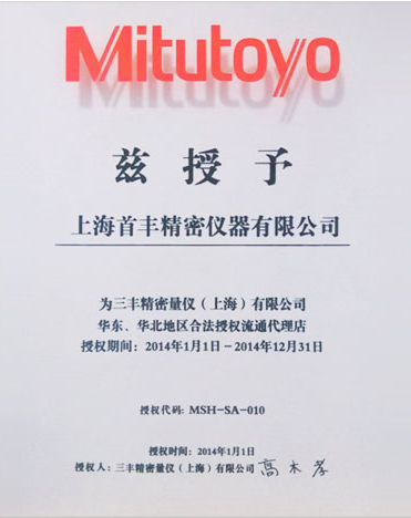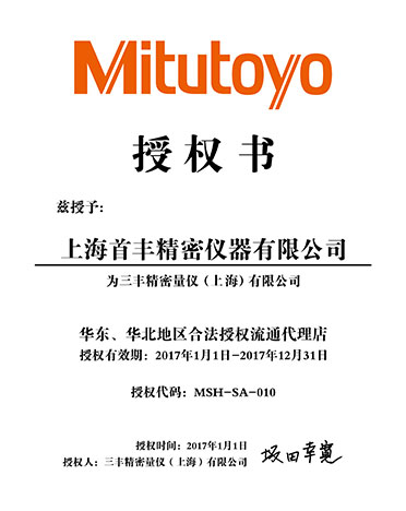 公司于2013年至今連續(xù)十年取得華東、華北合法授權流通代理店和華東、華北合法授權儀器特約店等資格證書,測量儀器類為三豐公司五星級代理,具有強有力的價格優(yōu)勢。2021年,公司秉承"顧客至上,服務優(yōu)先"的經營理念,堅持"竭誠服務"的原則為廣大新老客戶繼續(xù)提供更優(yōu)質的服務!